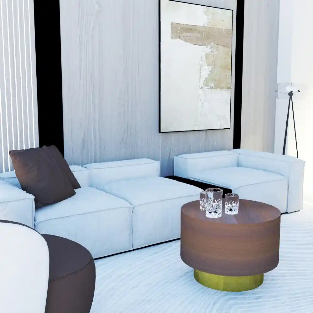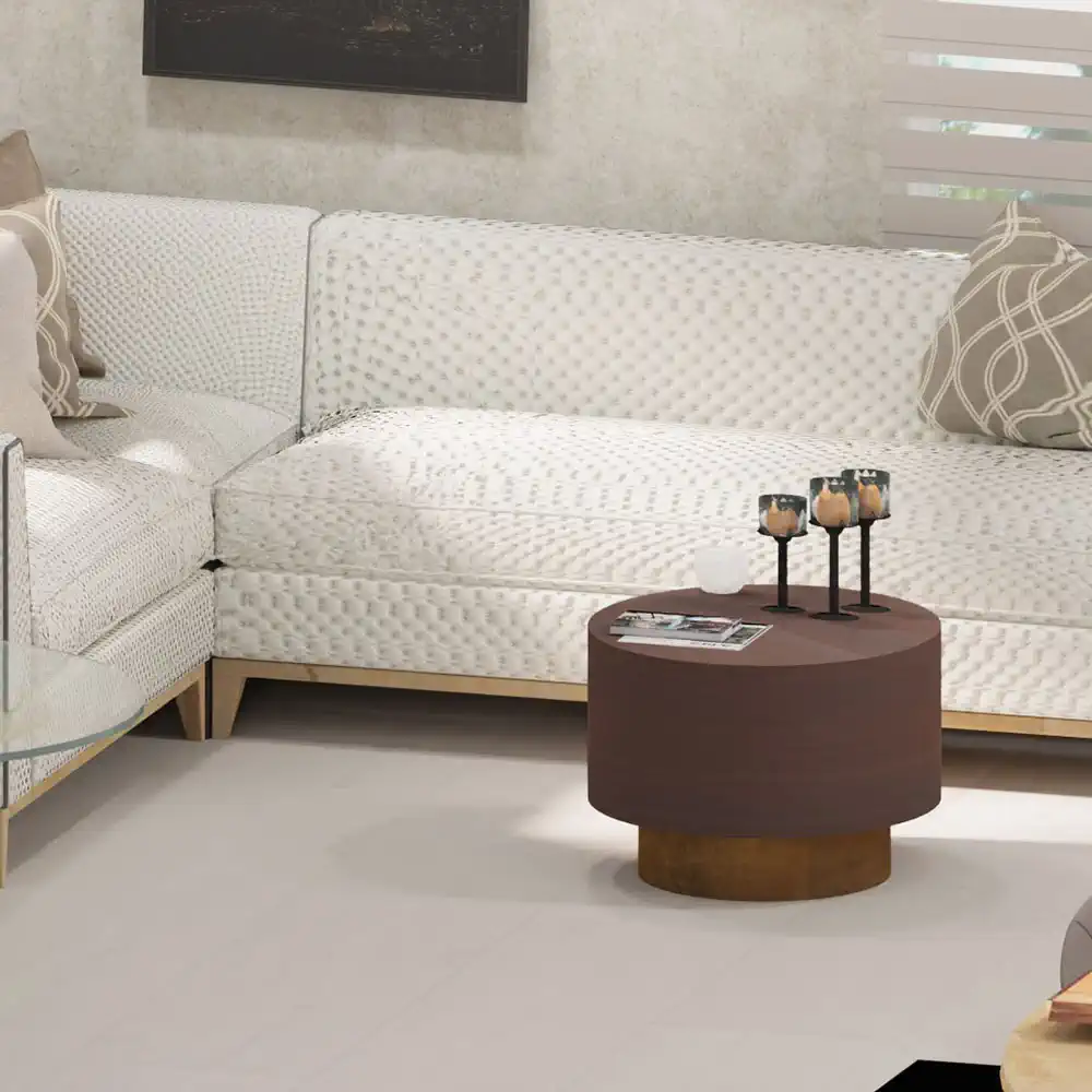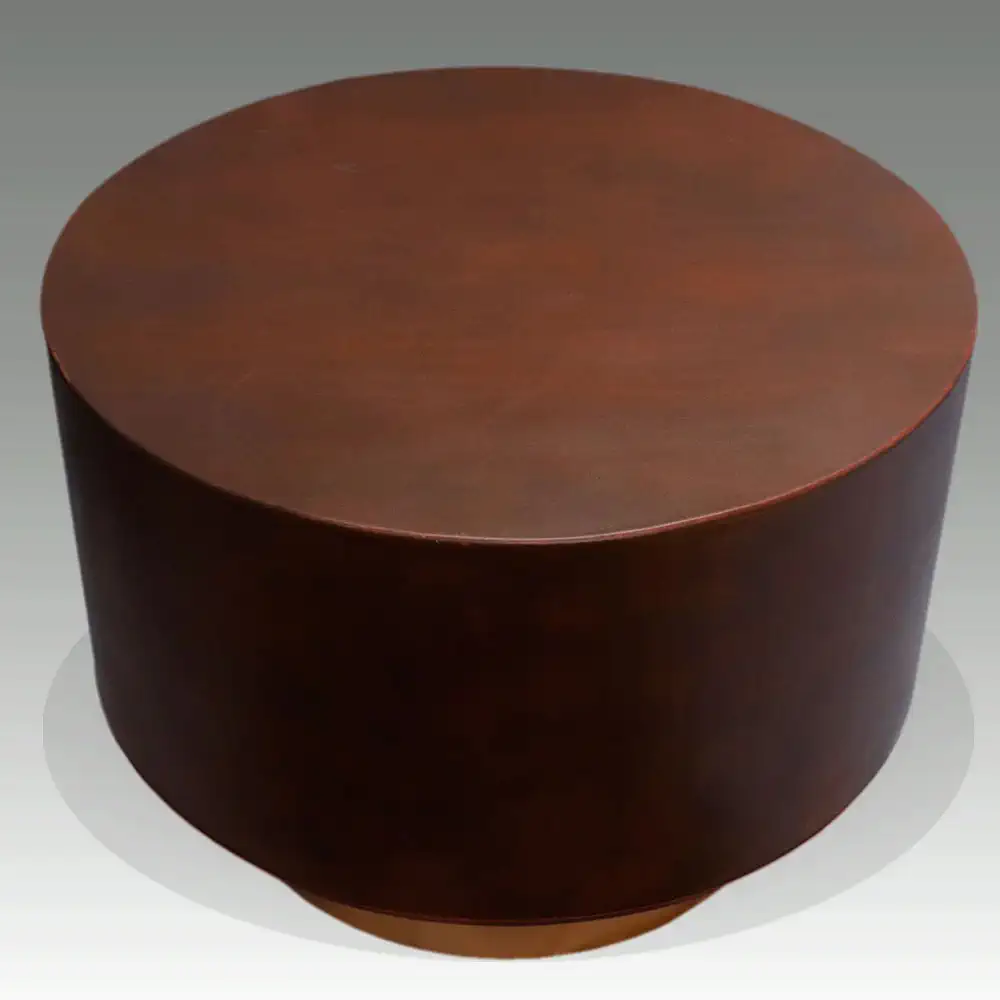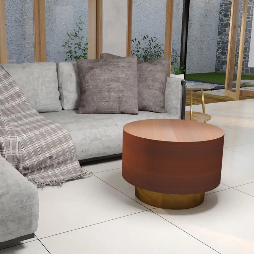 Mesa de centro metálica modelo «Mush» de gran calidad, acabado marrón circulo superior y dorado inferior.