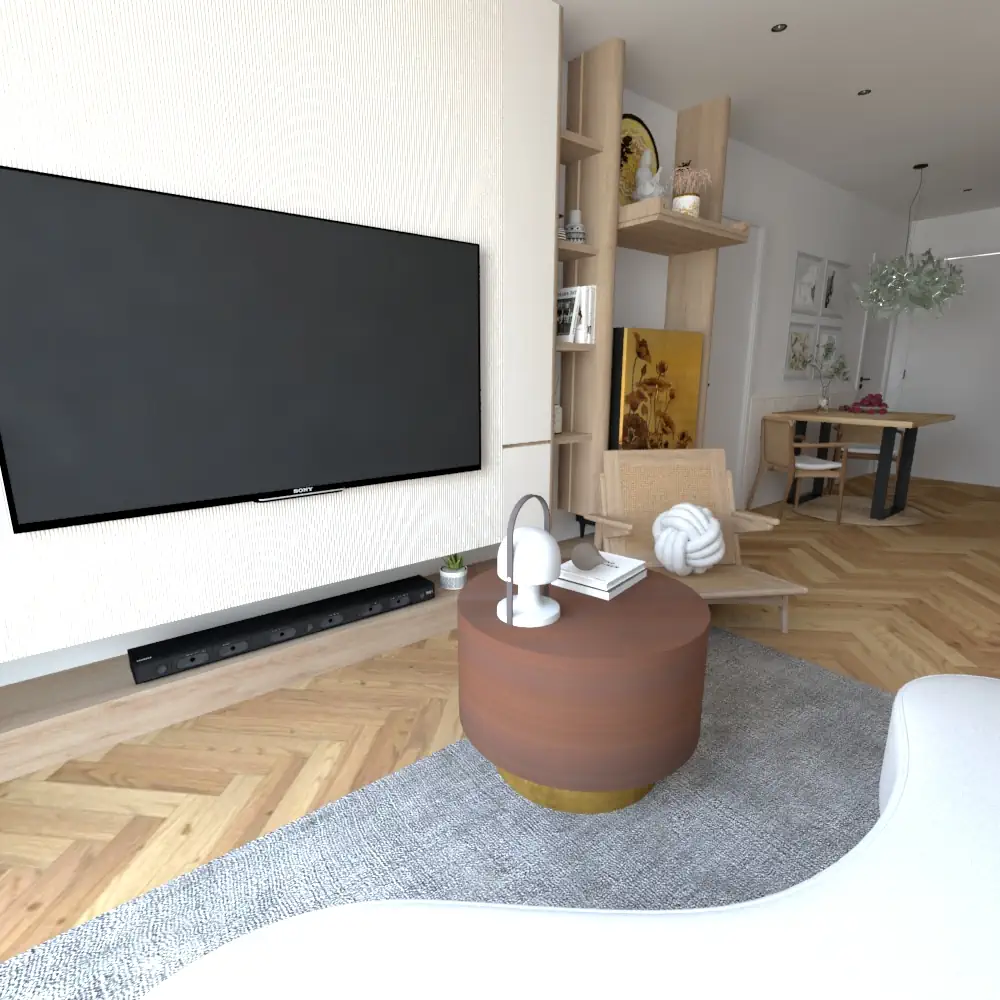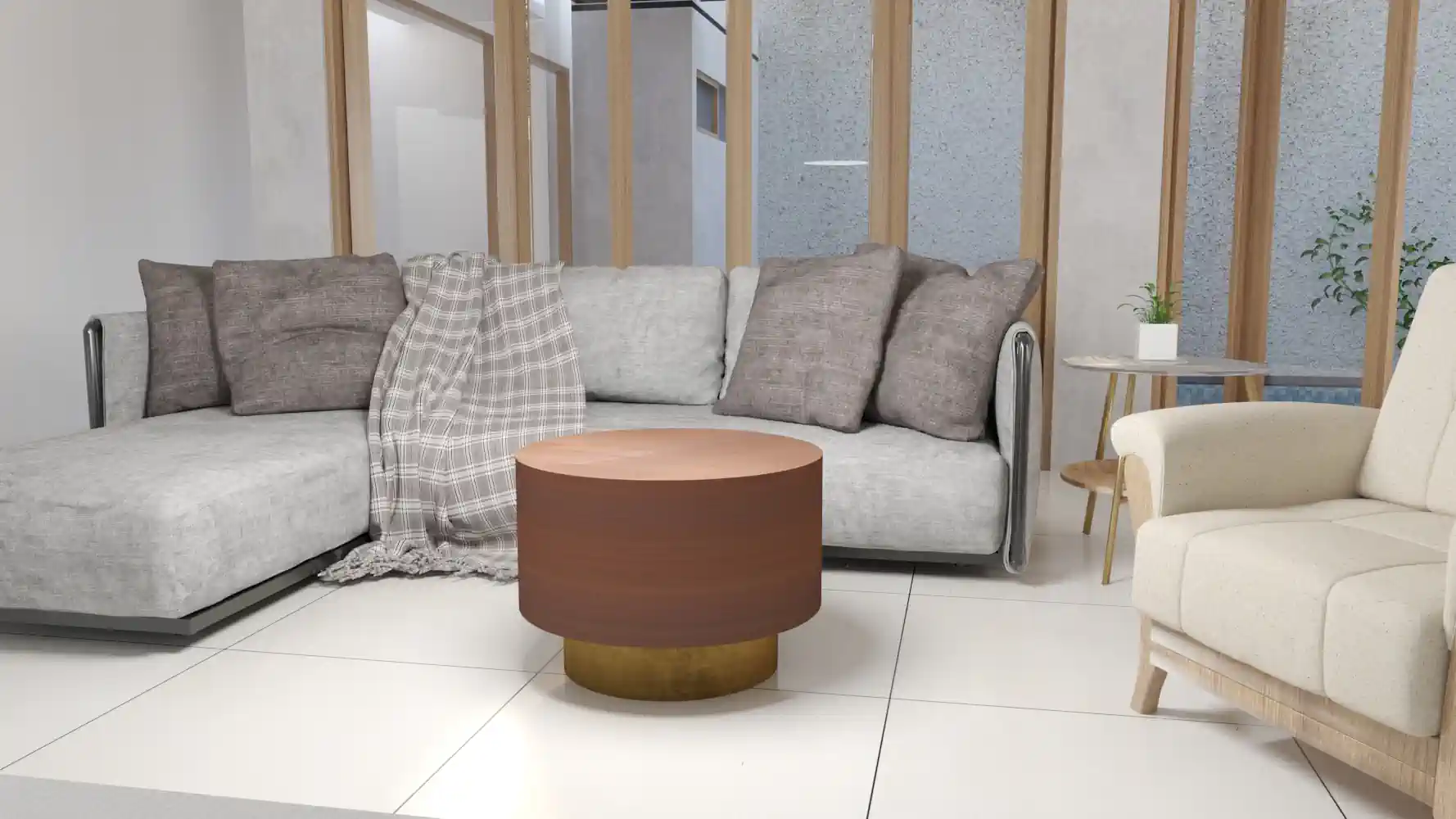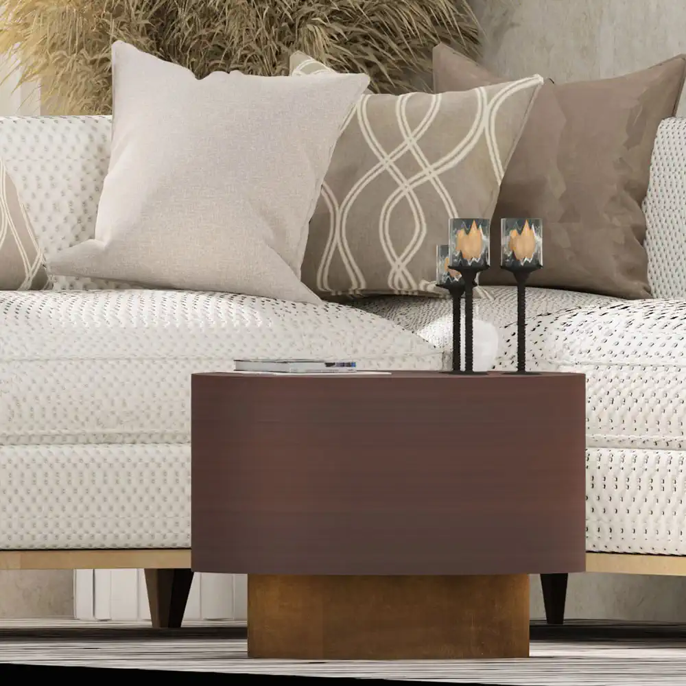 Mesa de centro metálica modelo «Mush» de gran calidad, acabado marrón circulo superior y dorado inferior.