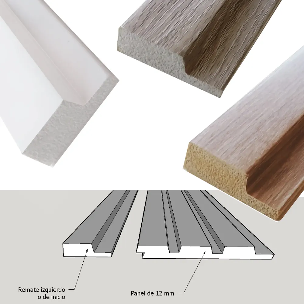 Remate izquierdo panel 3D listón estrecho 2500 x 42 x 12 mm